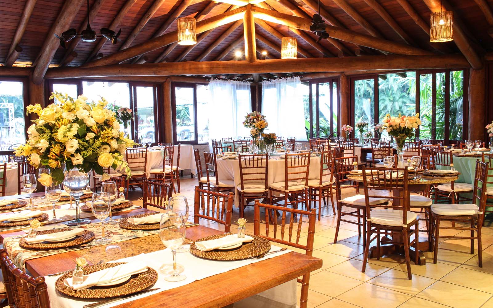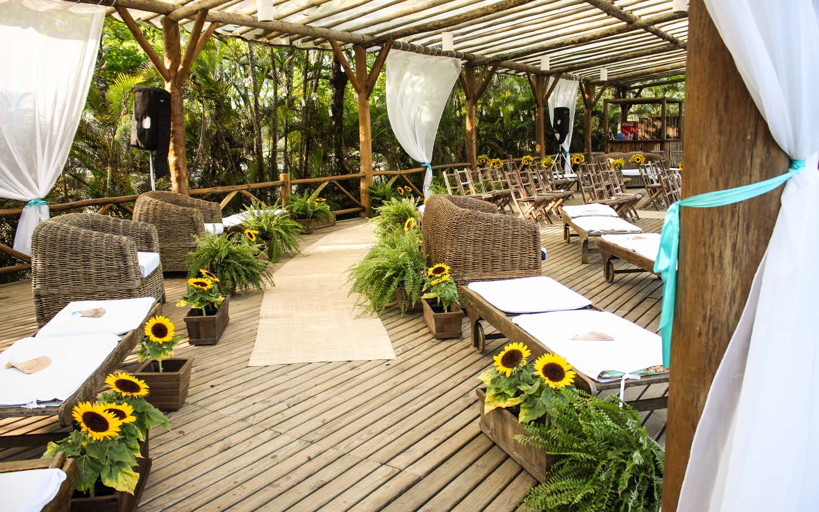 No Espaço Taioba seus convidados experimentarão o clima praiano e o contato com a natureza, envolvidos no conforto e requinte de nossa arquitetura caiçara. O deck externo garante espaço para montagem de mesas e lounges, enquanto o espaço interno é destinado a receber festas com banda, DJs, pista de dança e bares, com muito espaço e acústica perfeita, oferece tranquilidade para a realização de eventos.